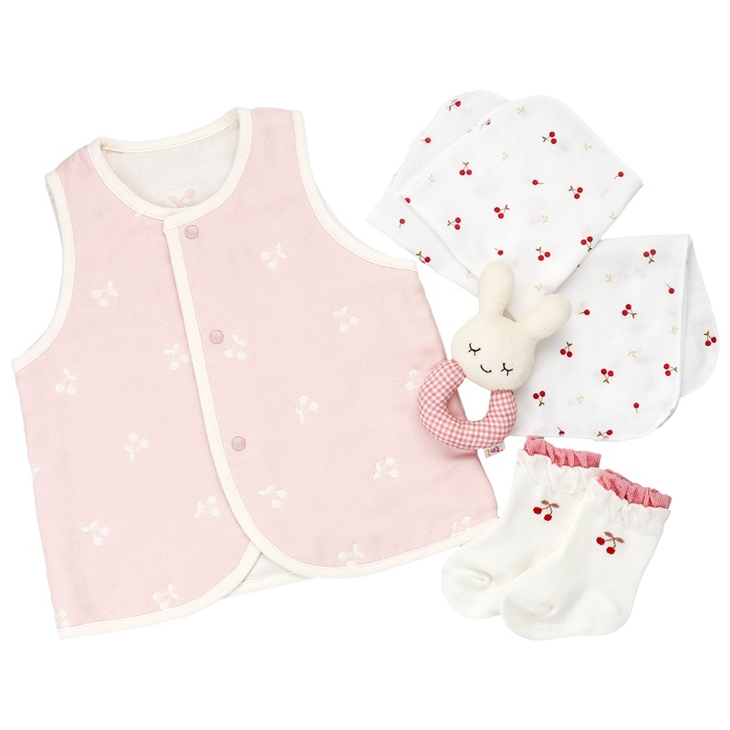 体温調節が苦手な赤ちゃんに、さっと羽織れて便利なベスト。実用的なソックスやハンカチは、何枚あっても便利なアイテムです。可愛いガラガラも人気の5点入りセットは出産のお祝いにおすすめです。