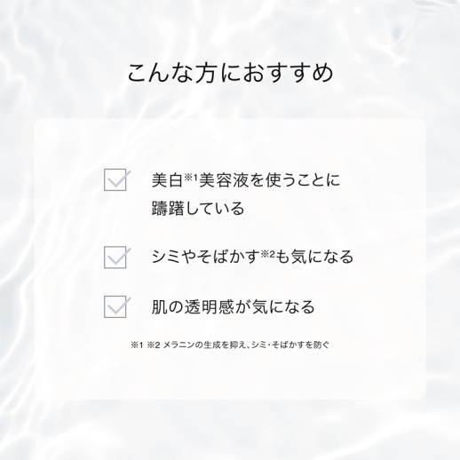 ※1 メラニンの生成を抑え、シミ・そばかすを防ぐ