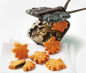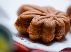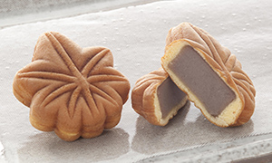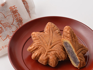 広島の県花である”もみじ”の葉をかたどった型に入れて焼き上げるカステラ饅頭。