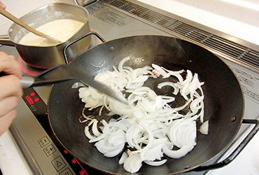 ホワイトソースも時々混ぜてやり、焦げつかせないように気をつけてください。