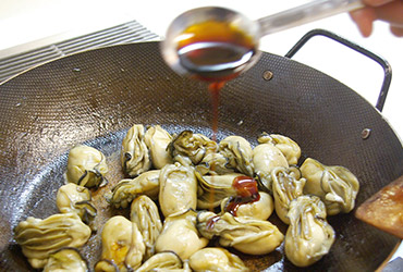 このとき具材を蒸した鍋に牡蠣から水がたくさん出ていた場合、ソースが水っぽくなりますので、しばらく加熱して水分をとばしてください(牡蠣から出た水は旨みですので、捨てずに一緒に混ぜてください)。最後に味を見て、必要であれば塩こしょうを入れます。
