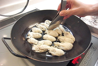 塩こしょうを少々いれますが、牡蠣から塩気が出ますので、味を見ながら加減してください。